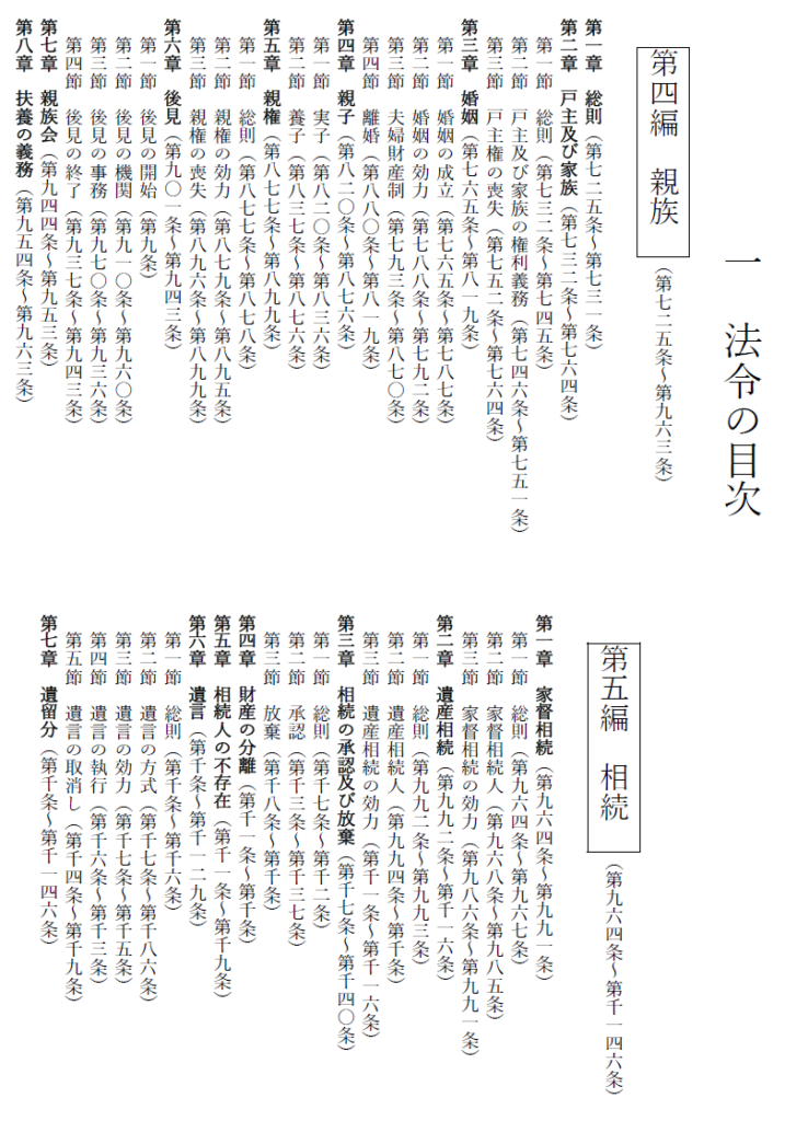 01/05/2026 縦書き本(法令目次) 縦横二つの本>縦書きの本:固定レイアウト・ペーパーバック(オンデマンド用)>>法令目次 \NAYA\BookProject\戦前民法(親族相続)\T縦書き版の本 cf 材料(法令目次)